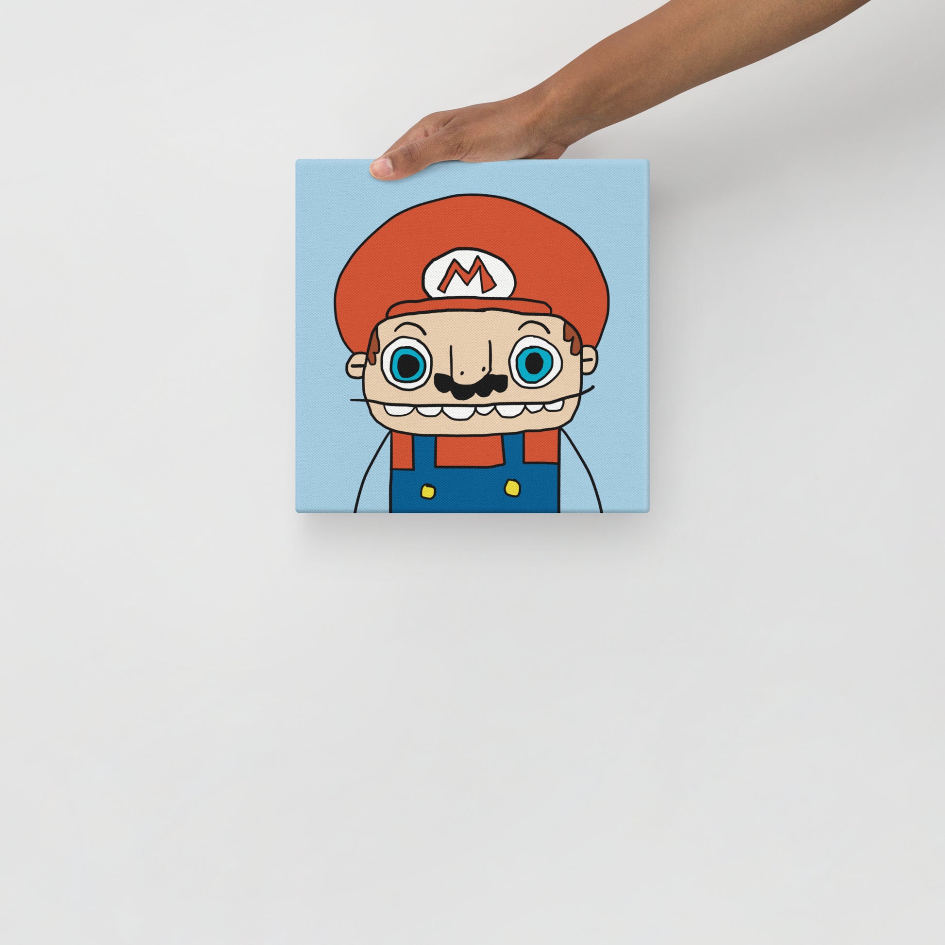 Add a splash of chaotic charm to your wall with this 10” x 10” canvas print of Italian Man #1, the unmistakably recognisable hero in all his hilariously imperfect glory. From his uneven moustache to his “overalls-ish” outfit, every detail is delightfully messy—and entirely lovable.